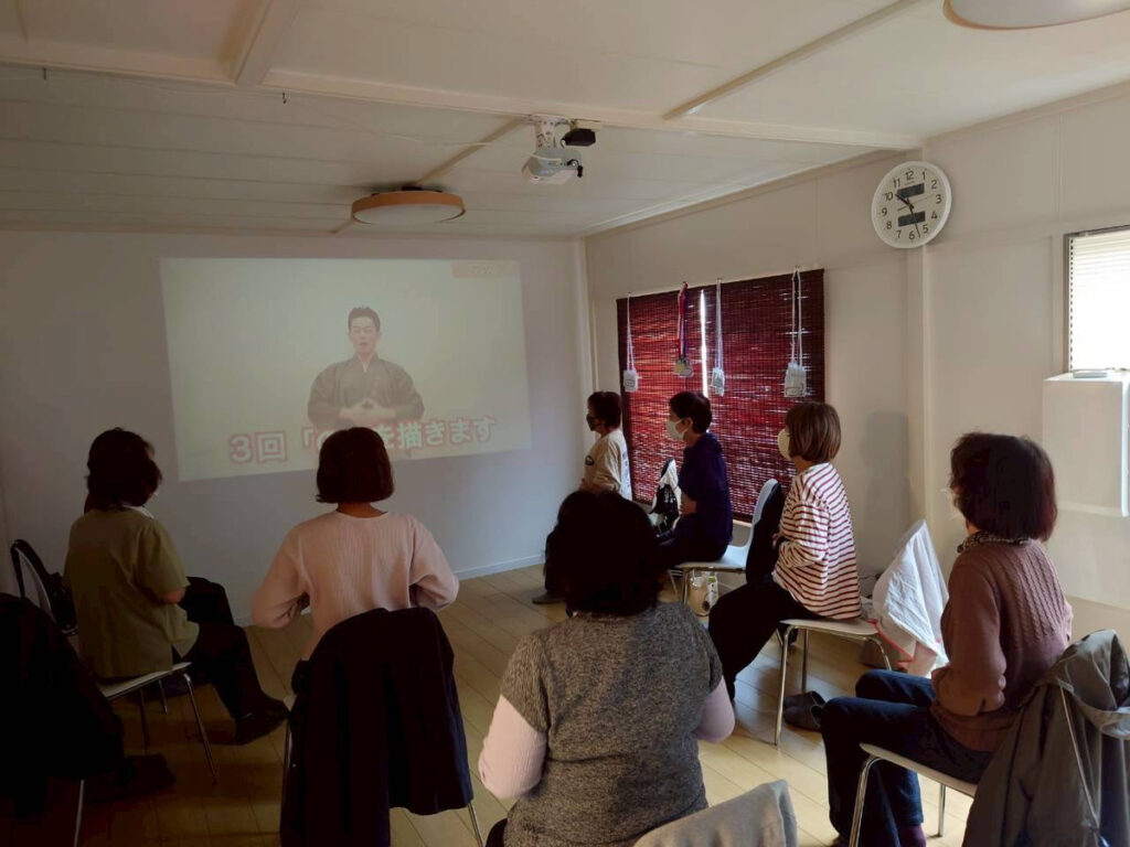 みんなで動画を見ながら、体を動かします。